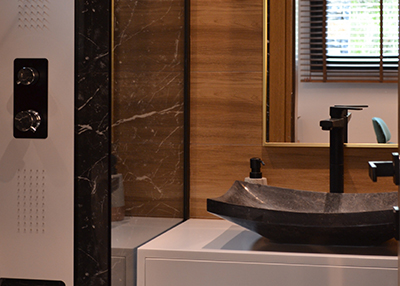 Κάθε δίκλινο υπνοδωμάτιο διαθέτει δικό του μπάνιο.